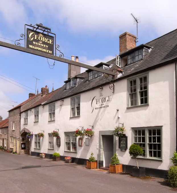 The George at Nunney must have been an old coaching Inn when it opened a few hundred years ago. You can imagine the horses, traps & carriages heading down Church Street, turning through its arch into what is now the pub car park.